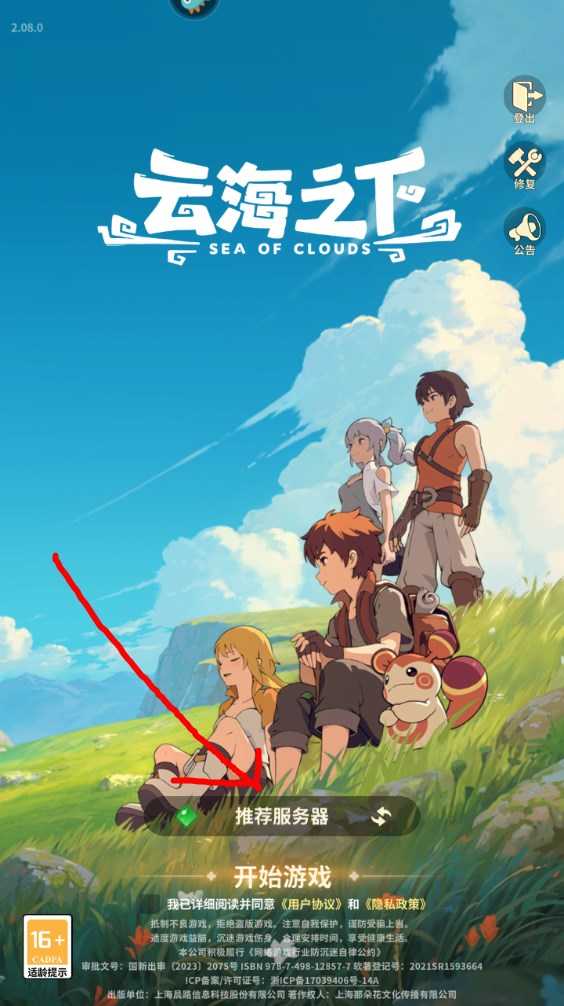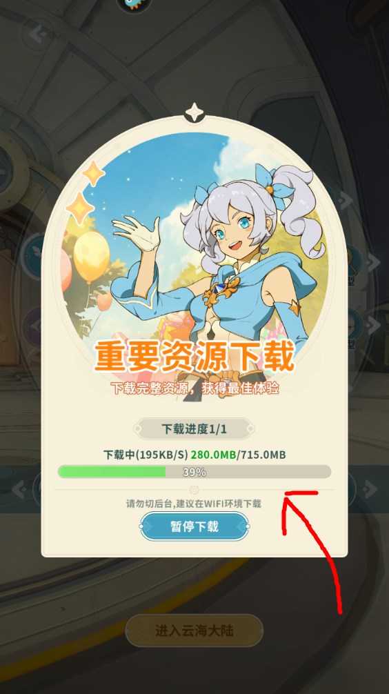 5、点击进入云海大陆,第一次进入还需要下载一些资源,请耐心等待。
