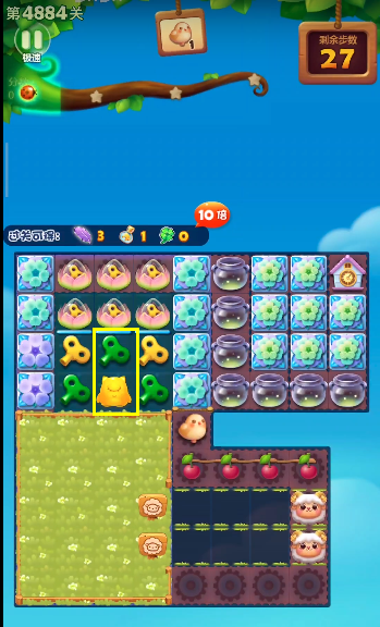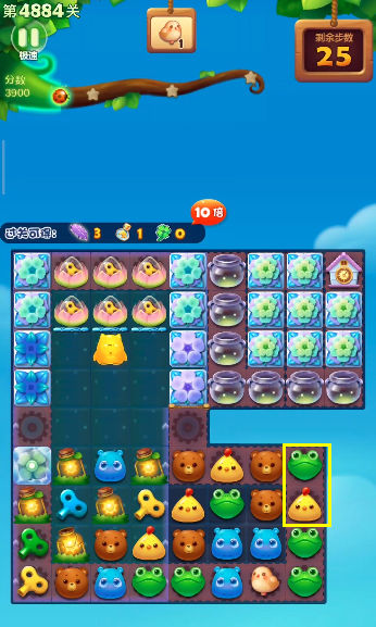在游戏过程中,上方精灵罐子是需要优先处理的重点。只有打开这些罐子才能激活银币通道,为后续连消创造机会。冰栅栏下方通常会掉落红色和小黄鸡,多利用竖直特效比在上方做普通三消更有效。当第一个星星瓶出现时,尽量与魔力鸟交换实现第一次清屏,这样能快速清理银币和部分障碍。第二个星星瓶则可以留到后期与特效交换作为收尾。闪电鸟虽然能加分,但不必刻意追求,除非能形成对角闪电鸟组合。