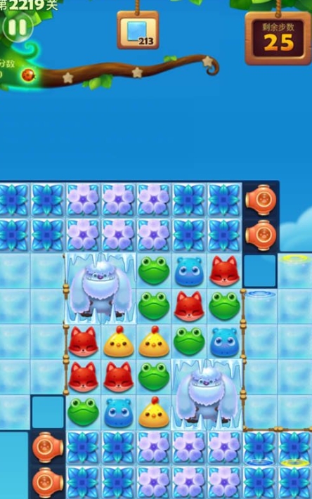 针对4379关的银币和蜂蜜收集任务,必须掌握特效连锁技巧。当蜜罐被特效打破后,流出的蜂蜜会附着在相邻动物上,用爆炸特效消除可同时完成银币收集。独眼怪释放的随机特效能有效清理死角冰块,但需注意其能量积累速度与褐色毛球干扰。在最后5步时,若剩余目标集中在石门下方,可保留重组道具强制刷新动物排列,利用最后一次翻转机会完成终极消除。