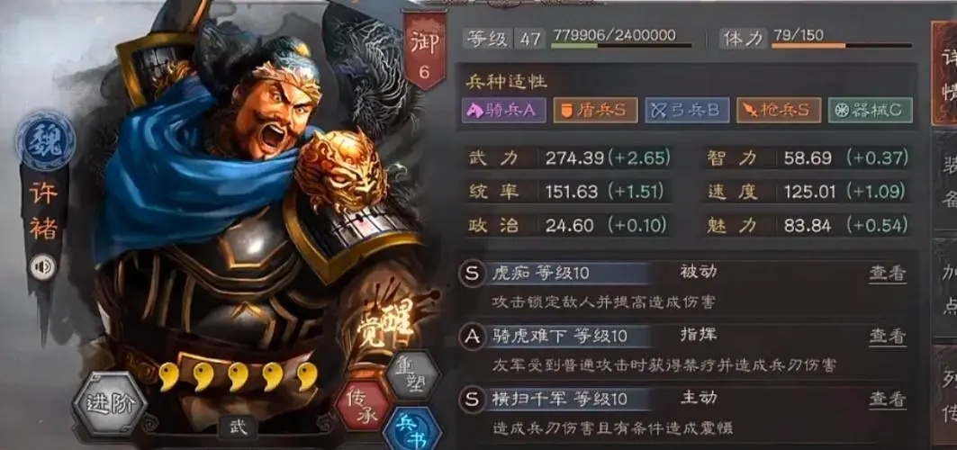 内政战法分为多种类型,包括屯田收益提升、资源产量加成和属性强化等。A级战法见机行事能提升24点政治属性,而出口成章可增加24点魅力值,这些属性直接影响委任效果。比如政治属性高的武将担任主政官时,加成效能更强;魅力高的武将则适合贸易官或寻访使职位。需部分战法效果可以叠加,比如同时装备A级和B级屯田战法,能进一步放大收益。